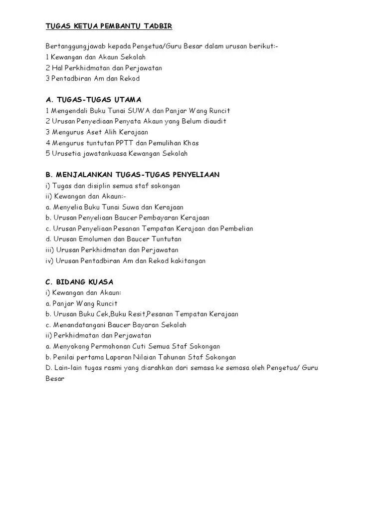 Senarai Tugas Pembantu Tadbir Perkeranian Pdf